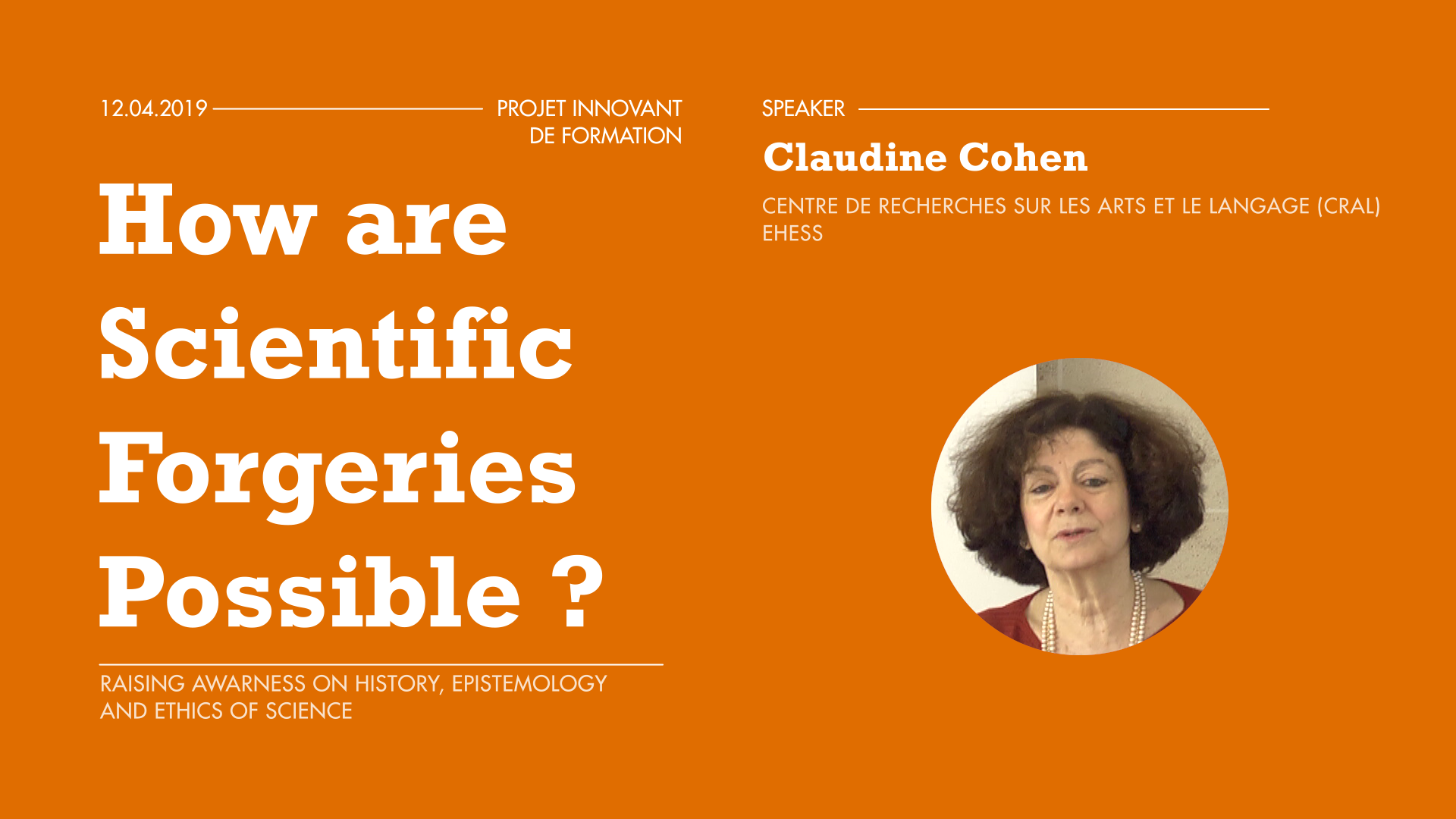 Are forgers in science betrayers of truth, or do they show how science is built? Following a brief definition of forgery, Claudine Cohen emphasizes the questions and goals she addresses in her lecture. She first approaches forgery through the lens of ethics and questions the efficiency of moralizing scientific research. She then recalls that scientific knowledge is a construction of facts, just like forgery is. She does however insist on the intentional aspect of forgery to produce false evidence and conclusions. Cohen ultimately analyses the processes and methods of historical sciences, such as archeology and paleontology, and gives examples of two famous archeological forgeries: the forgery of Moulin Quignon and the forgery of the Piltdown man.