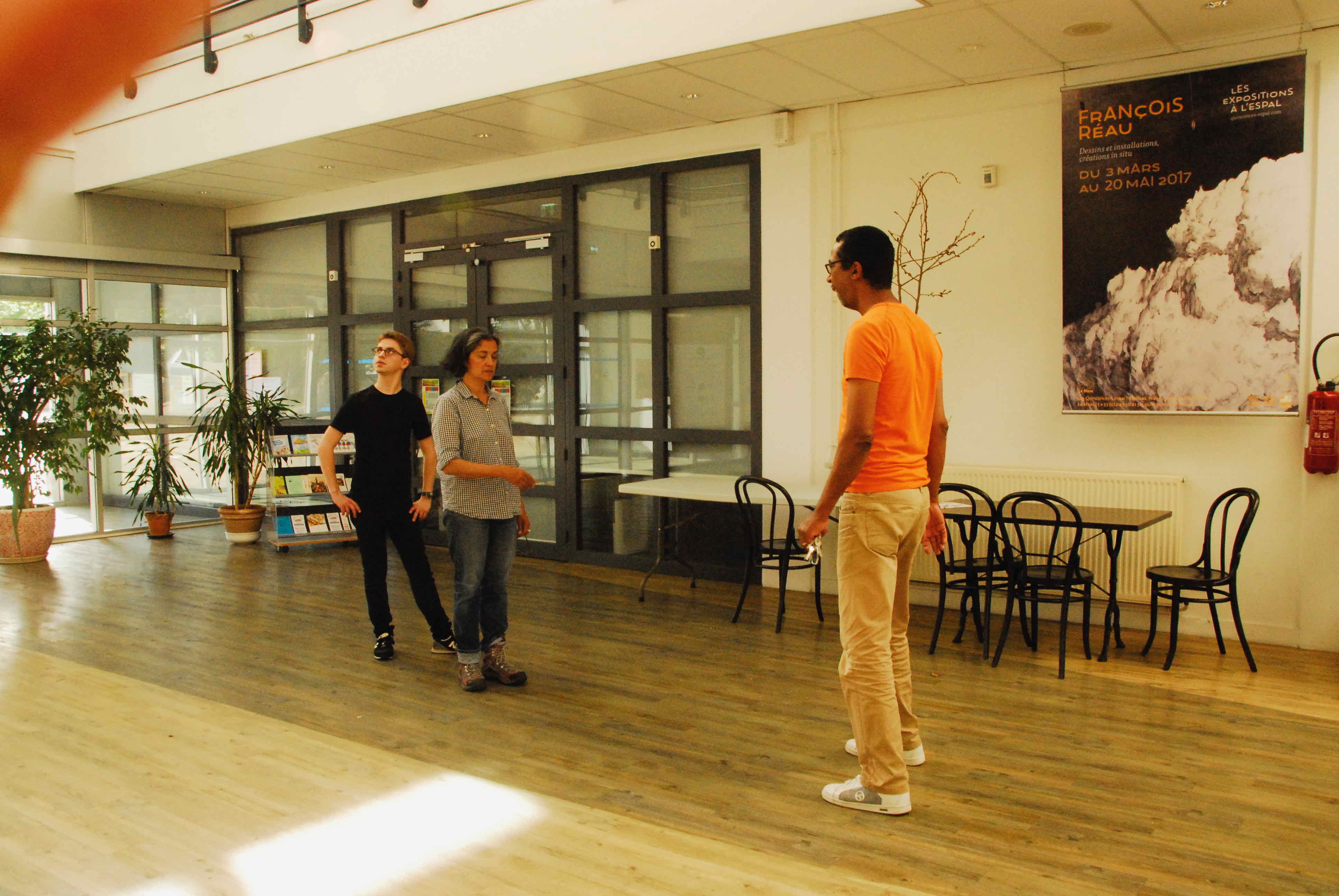 Prises préparations à l’Espal à la régie ; mise en place des feuilles pour réserver des sièges, l’ouverture de la salle à 30 minutes avant, la file d’attente pour entrer dans la salle